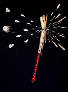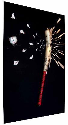 Mixed media - Baseball bat and ball dispersed on canvas-covered wood board